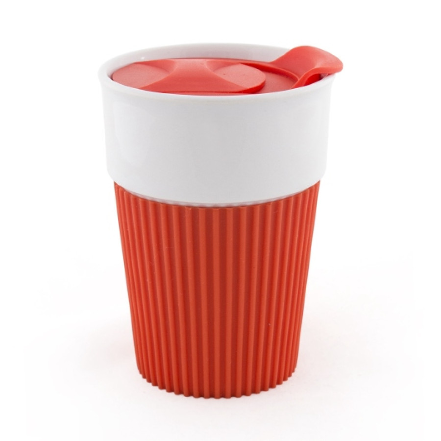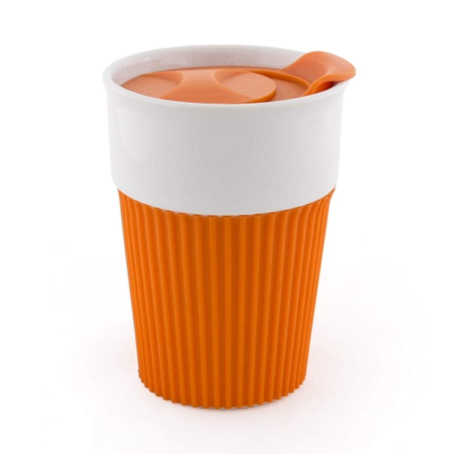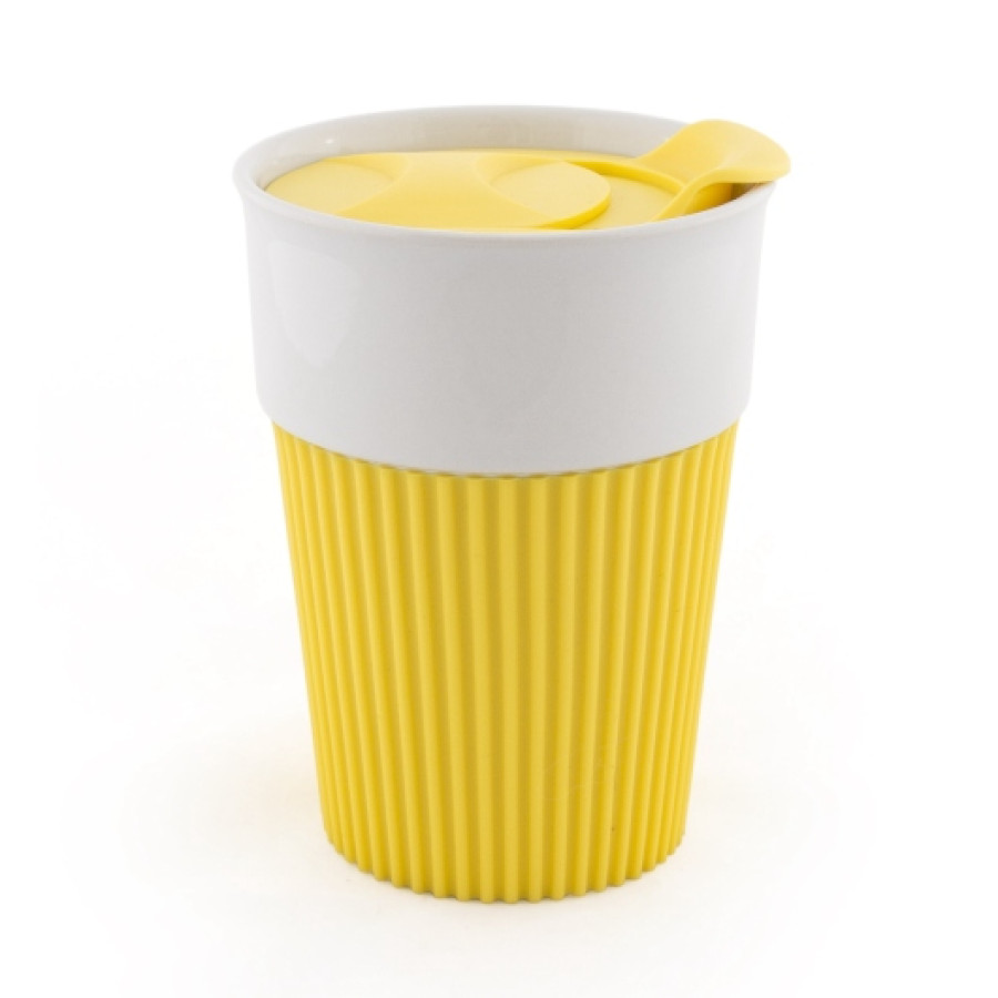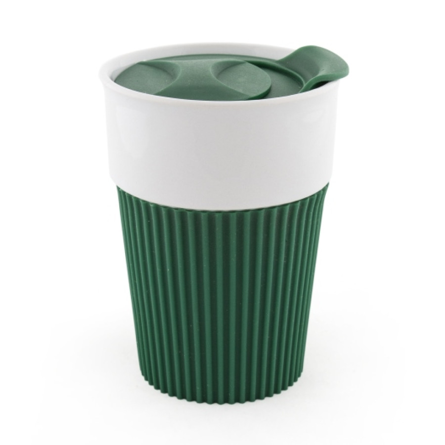 Як замовити AFINA , Керамічне горнятко з силіконом і пластиковою кришкою, 400 мл (світло-зелений) з логотипом від компанії Giftex: