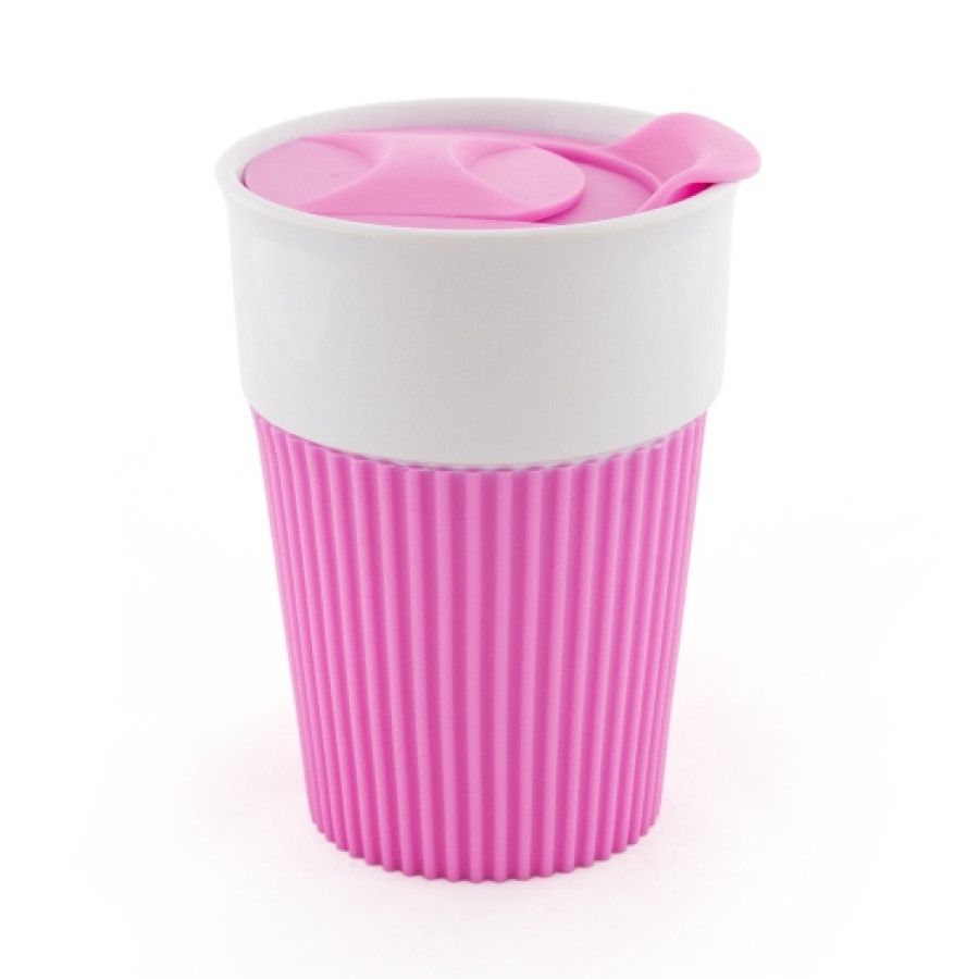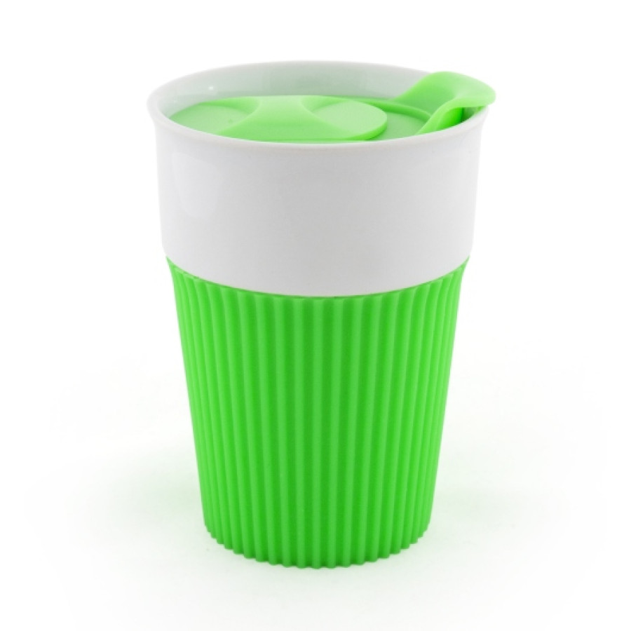 Замовити AFINA , Керамічне горнятко з силіконом і пластиковою кришкою, 400 мл (світло-зелений)