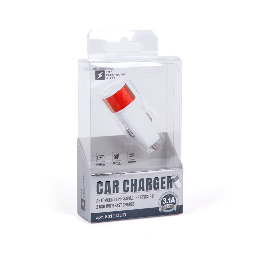 Автомобільний зарядний пристрій Duo, TM TEG (червоний) з логотипом — замовлення виготовлення від компанії Giftex. Ми пропонуємо високу якість продукції, швидке виготовлення, вигідні ціни та знижки постійним клієнтам. Працюємо з доставкою в будь-яке місто України.