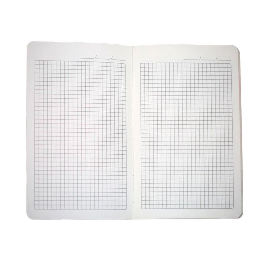 Має 8 перфорованих аркушів. В закритому вигляді блокнот фіксується за допомогою вертикальної гумки-фіксатора одного кольору з палітуркою. Тверда обкладинка зі штучної шкіри.