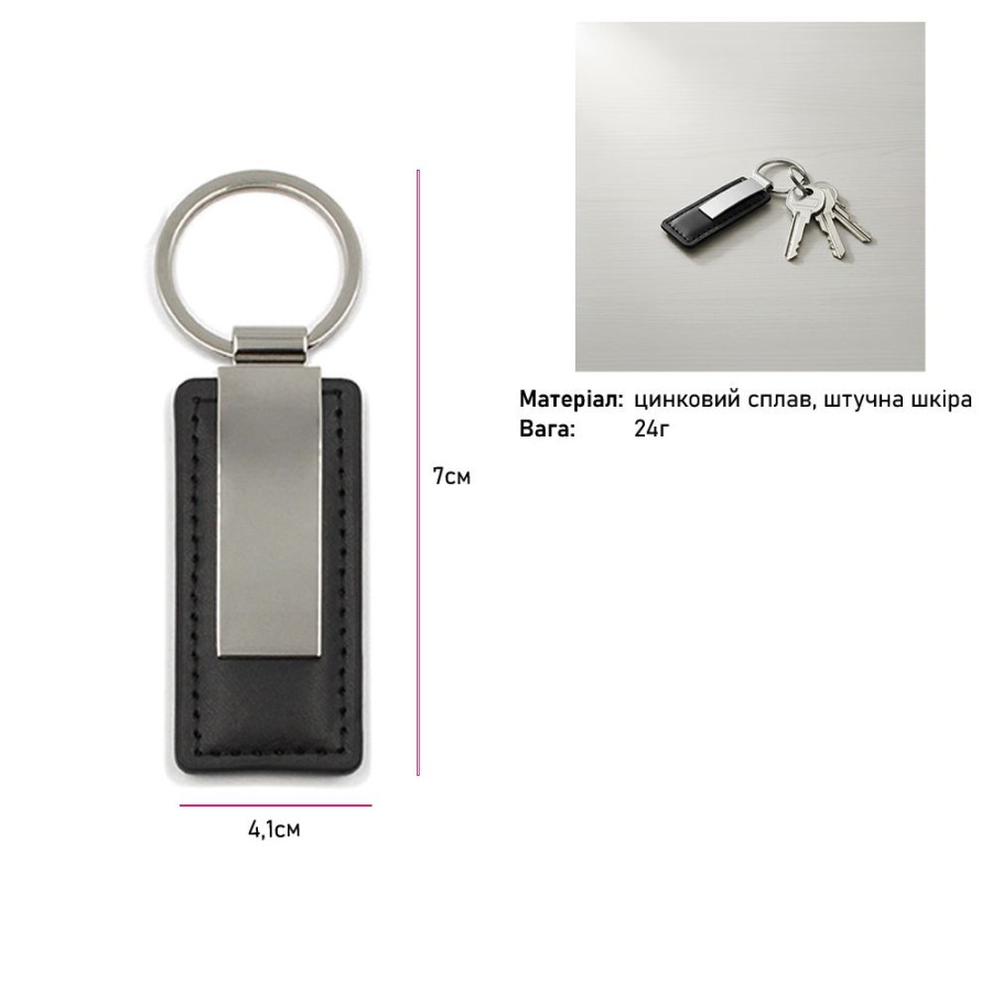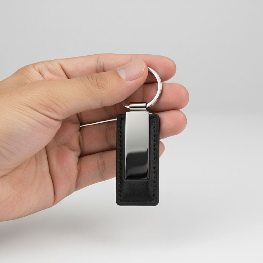 Металева вставка створює рівну поверхню, ідеальну для брендування. На брелоку можна розмістити корпоративний логотип, рекламний слоган або індивідуальний дизайн. Це робить його практичним аксесуаром і водночас ефективним носієм реклами.
