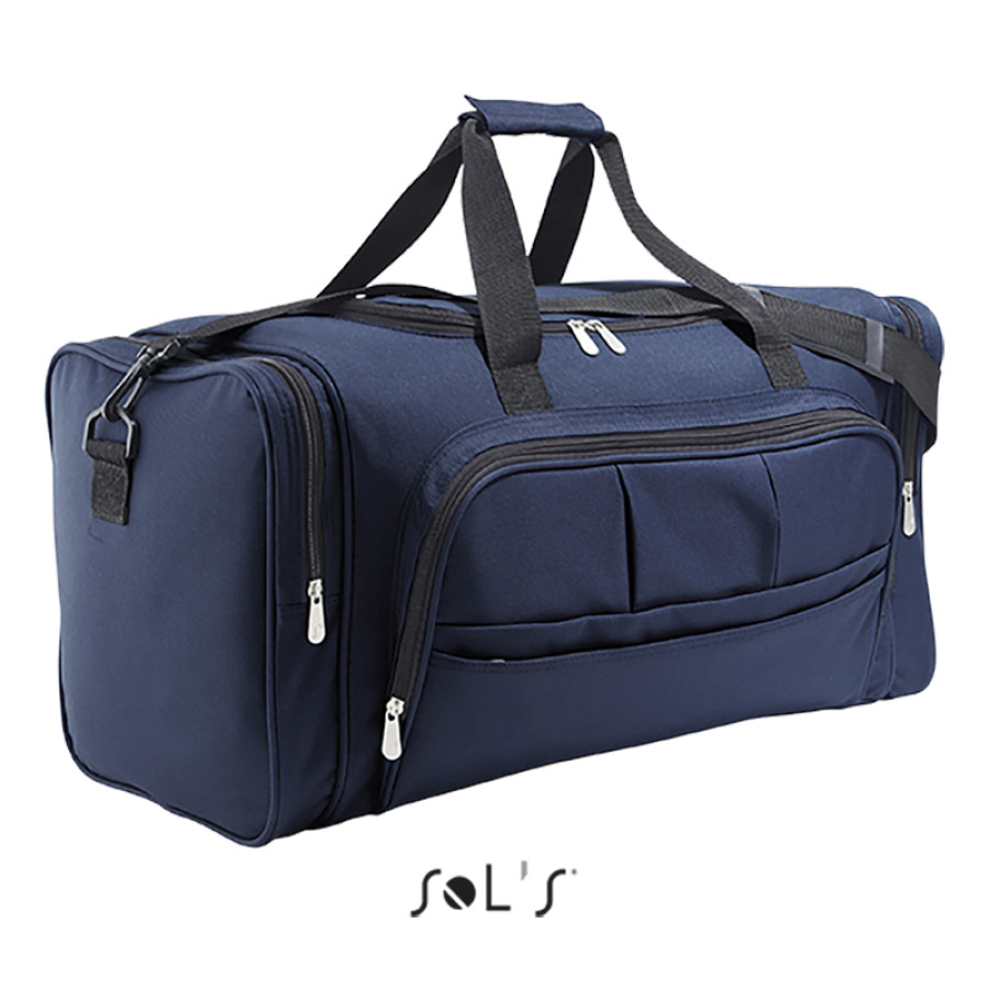 Сумка спортивна з поліестеру 600d з безліччю кишень SOL'S WEEK-END. Дуже велике основне відділення з круговою блискавкою і подвійним замком, 2 бічних кишені на блискавках, великі передні відділення на блискавках, нейлонові ручки з фіксатором для зручності транспортування, знімний регульований нейлоновий ремінь для носіння на плечі. Об'єм 48,4 літрів.