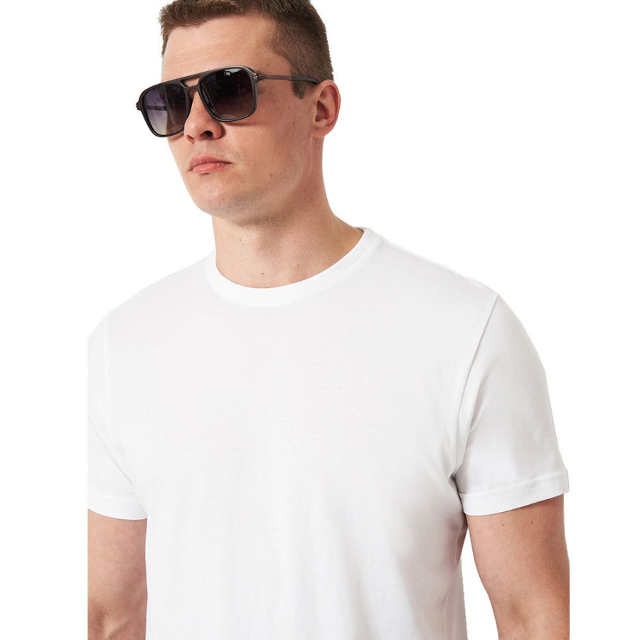 Футболка має круглий виріз. Горловина оброблена еластичною рібаною 4*4 та подвійними швами навколо. Окантовка на горловині складається з чотирьох шарів, що запобігає розтягуванню.