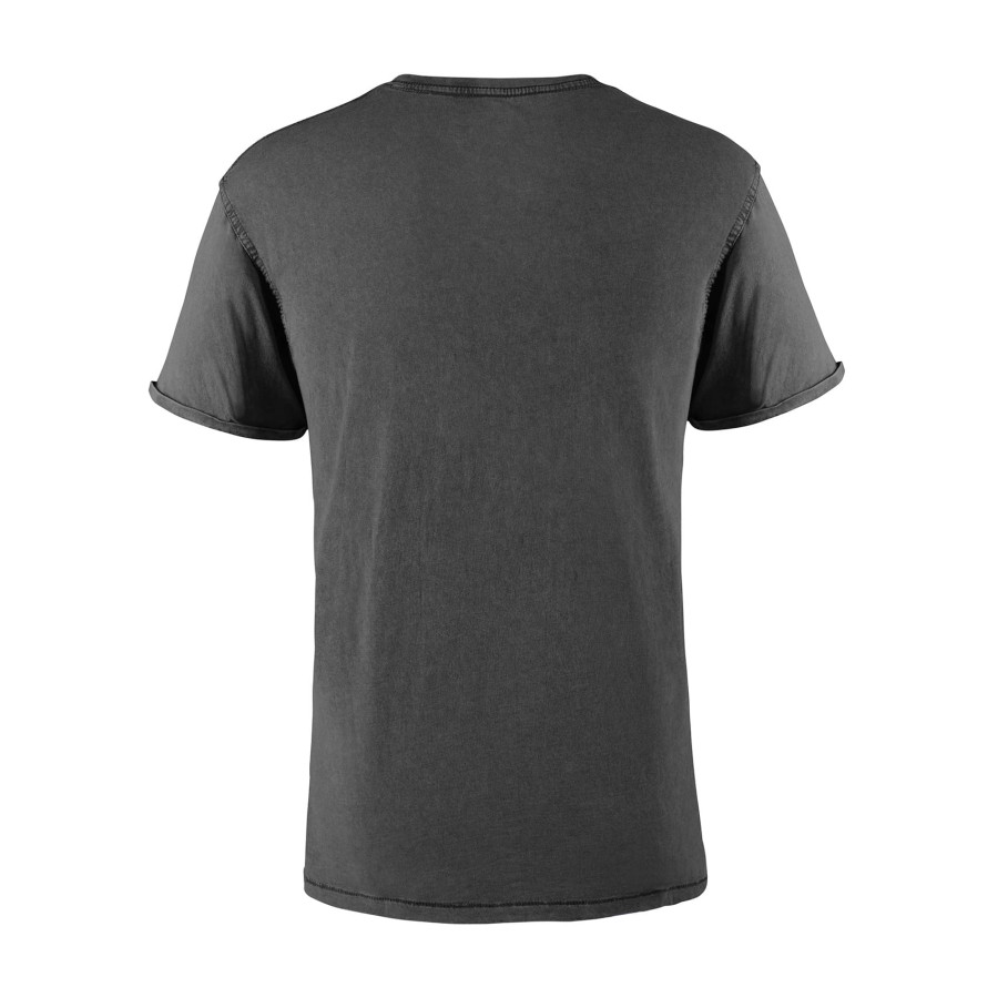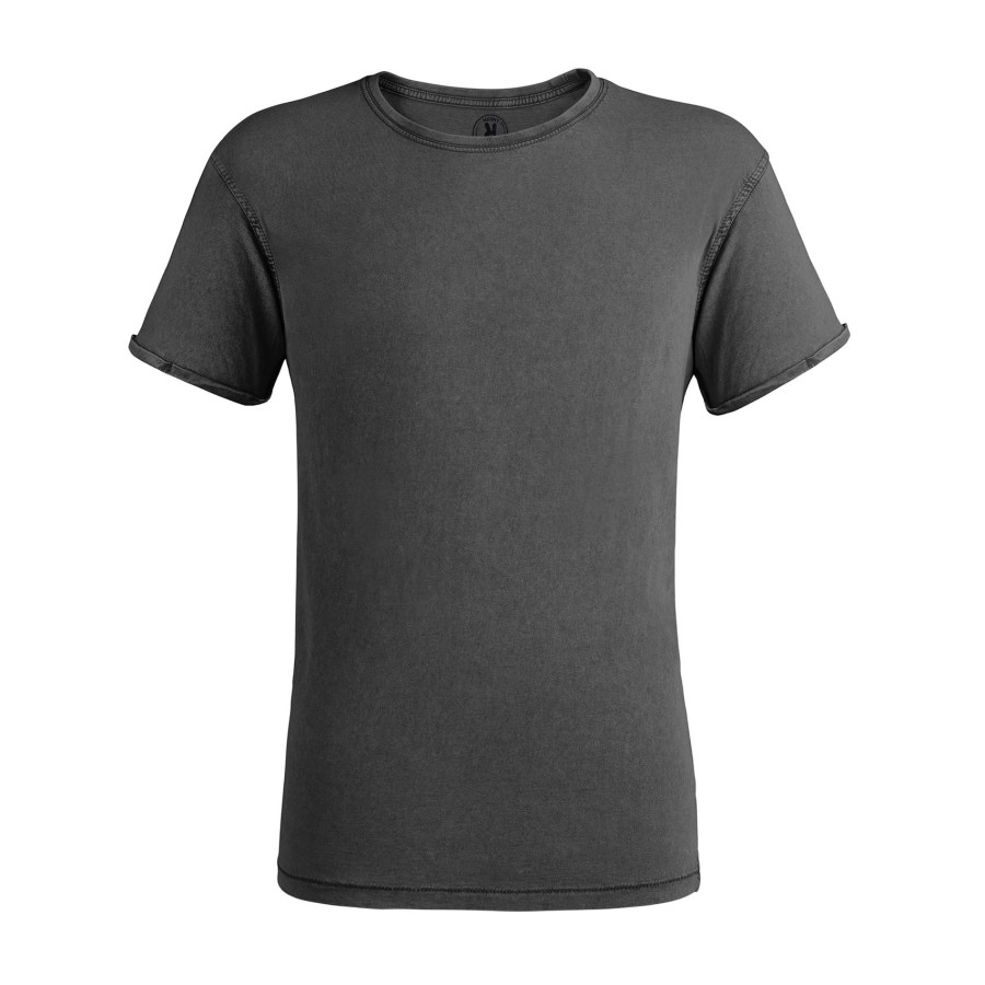 Футболка з короткими рукавами, злегка приталеною талією та ефектом прання. Чесана бавовна. Круглий ребристий комір 1x1. Виріз горловини оброблений стрічкою з тканини в тон. Подвійні шви з боків та пройм. Декоративна строчка на рукавах та подолі з посиленими деталями подолу