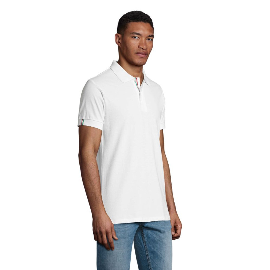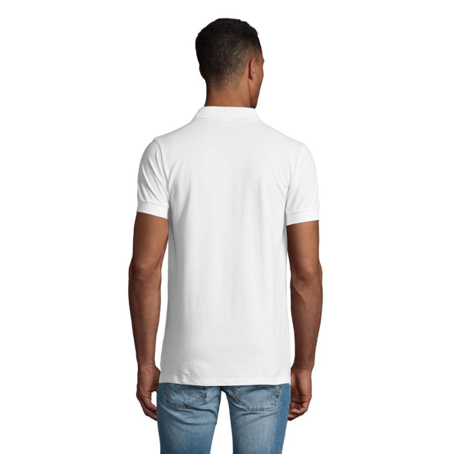 Футболка поло чоловіча SOL'S PATRIOT з коротким рукавом. Контрастна внутрішня сторона коміра. Посилена планка з двома білими перламутровими ґудзиками, контрастна смужка на планці і на внутрішній тасьмі по коміру. Декоративна двоколірна вставка на зовнішній стороні рукава і на бічних розрізах по низу вироба (зсередини). Виріб викроєн з трикотажного полотна. Приталений крій. Запасний ґудзик на внутрішньому боковому рядку вироба.