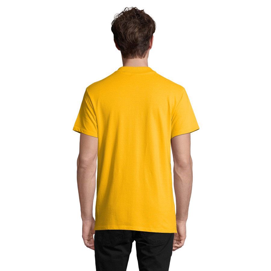 Футболка поло SOL'S SPRING II. Висока якість та класичний чоловічий крій. Комір оброблений рібом (резинка 1х1), манжети мають подвійний плоский шов. Посилена планка з трьома гудзиками в тон, прямий низ поло з бічними розрізами для кращої посадки по фігурі. Запасний гудзик на внутрішній бічній строчці виробу.