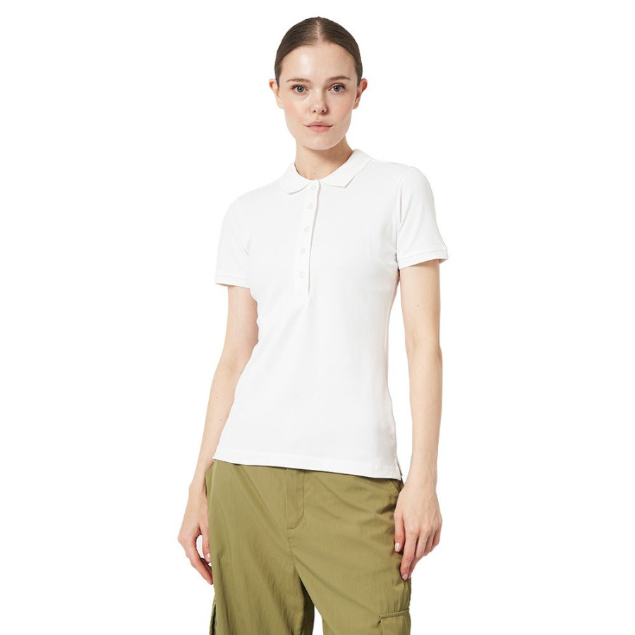 Жіноча футболка поло має приталений крій з виточками на грудях для кращої посадки. Обробка ензимами гарантує м’якість та гладкість тканини, але головне – виріб не дасть усадки після прання.