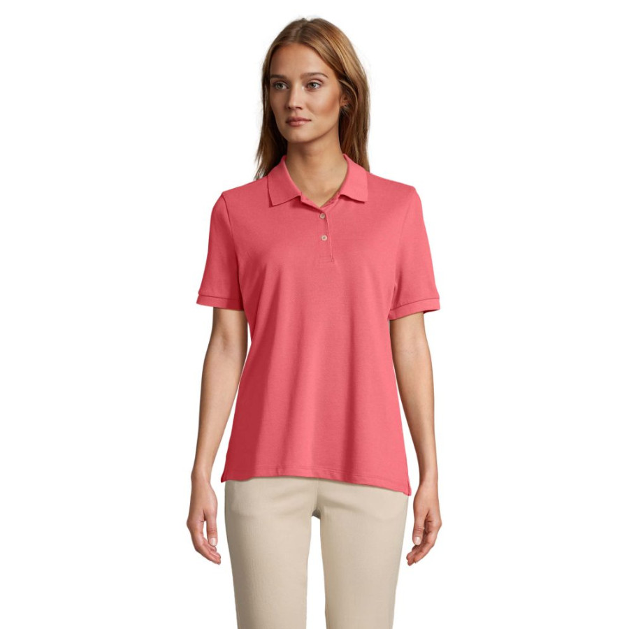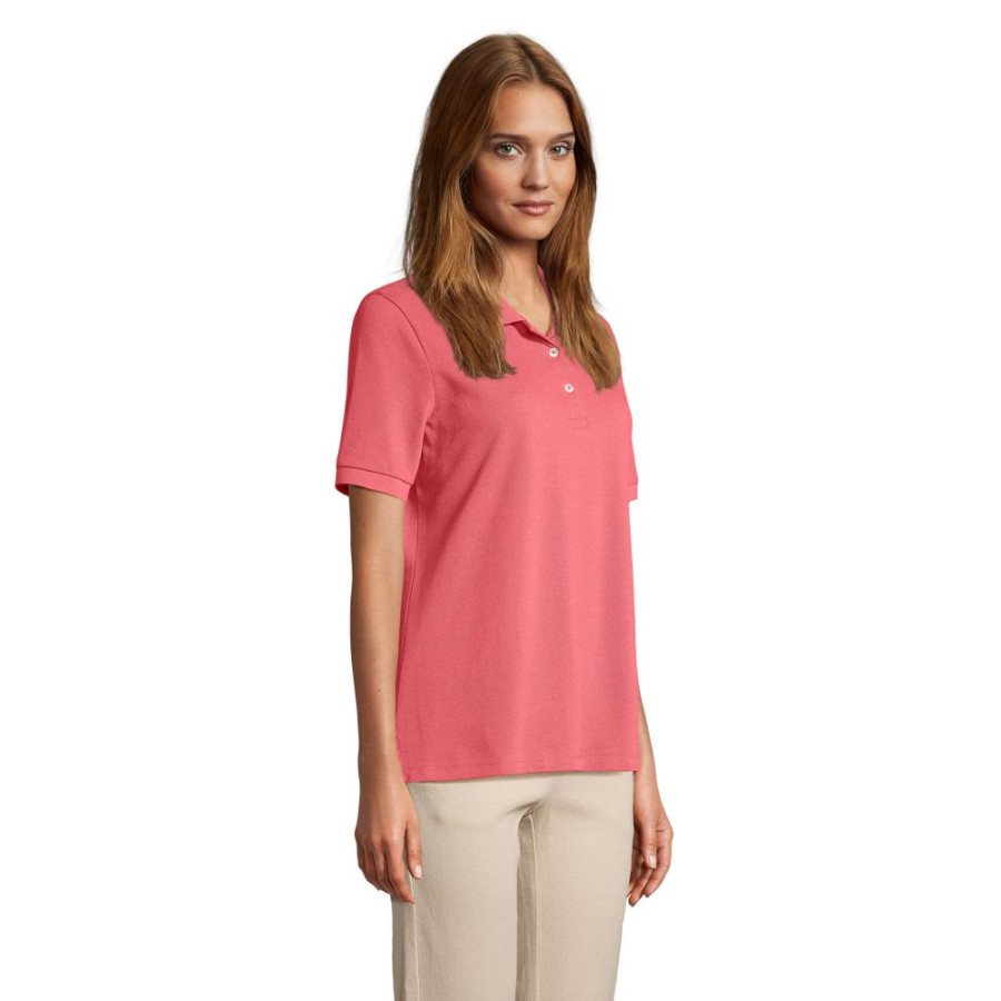 Футболка поло SOL’S Pacific women – це класична жіноча модель поло з короткими рукавами та зручний кроєм. Комір і манжети оброблені рібаною 1х1 з додаванням еластану. Стрічка на шиї додає комфорту при носінні.