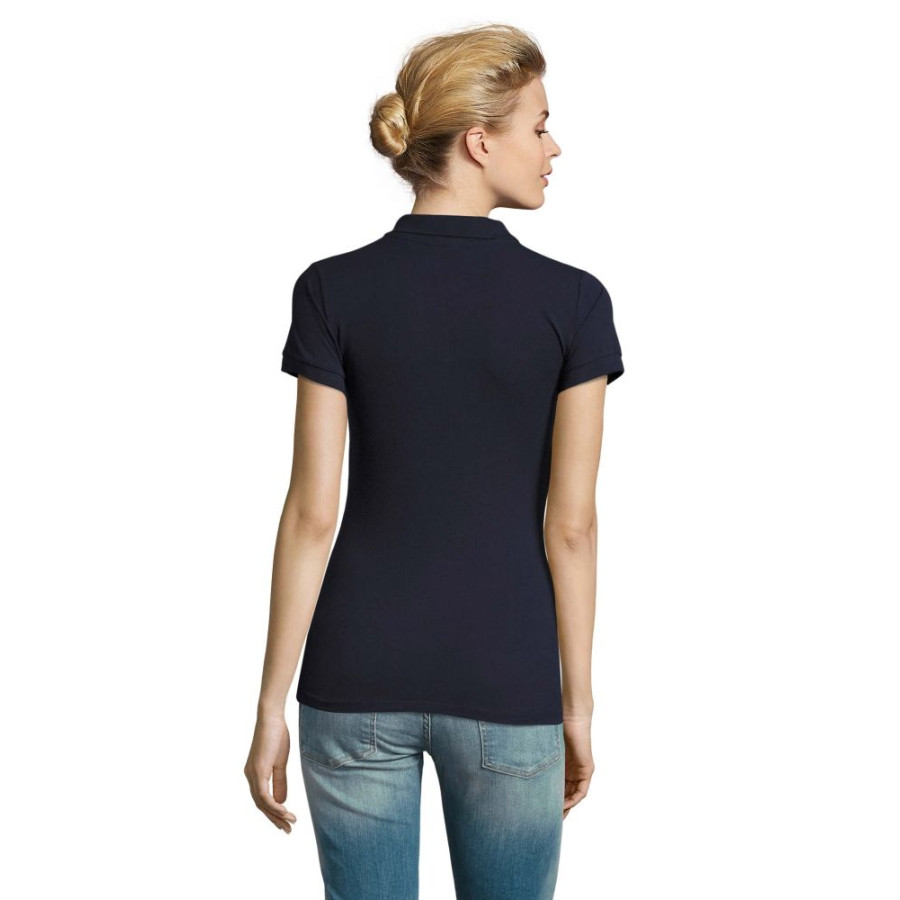 Жіноча футболка поло з короткими рукавами SOL'S PERFECT WOMEN. Планка з 3 гудзиками тон в тон; виріб викроєн и з трикотажного полотна. Запасний ґудзик на внутрішньому боковому рядку виробу. Зміцнюча тасьма по коміру оброблена рібаною 1х1. Облягаючий крій.