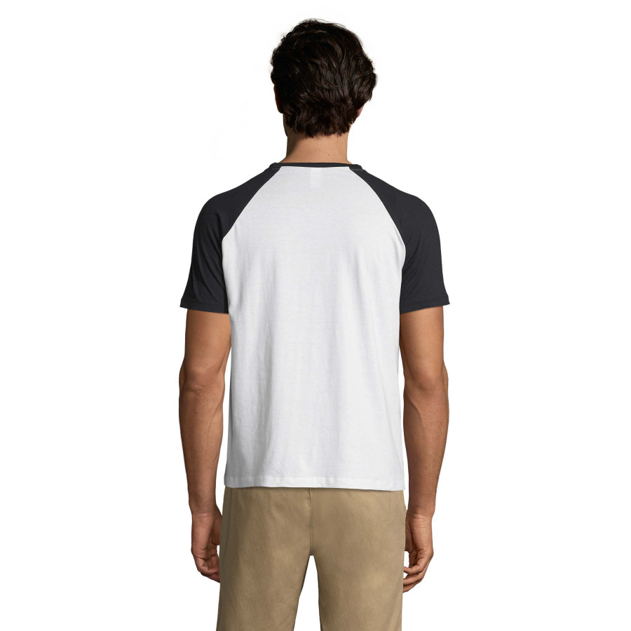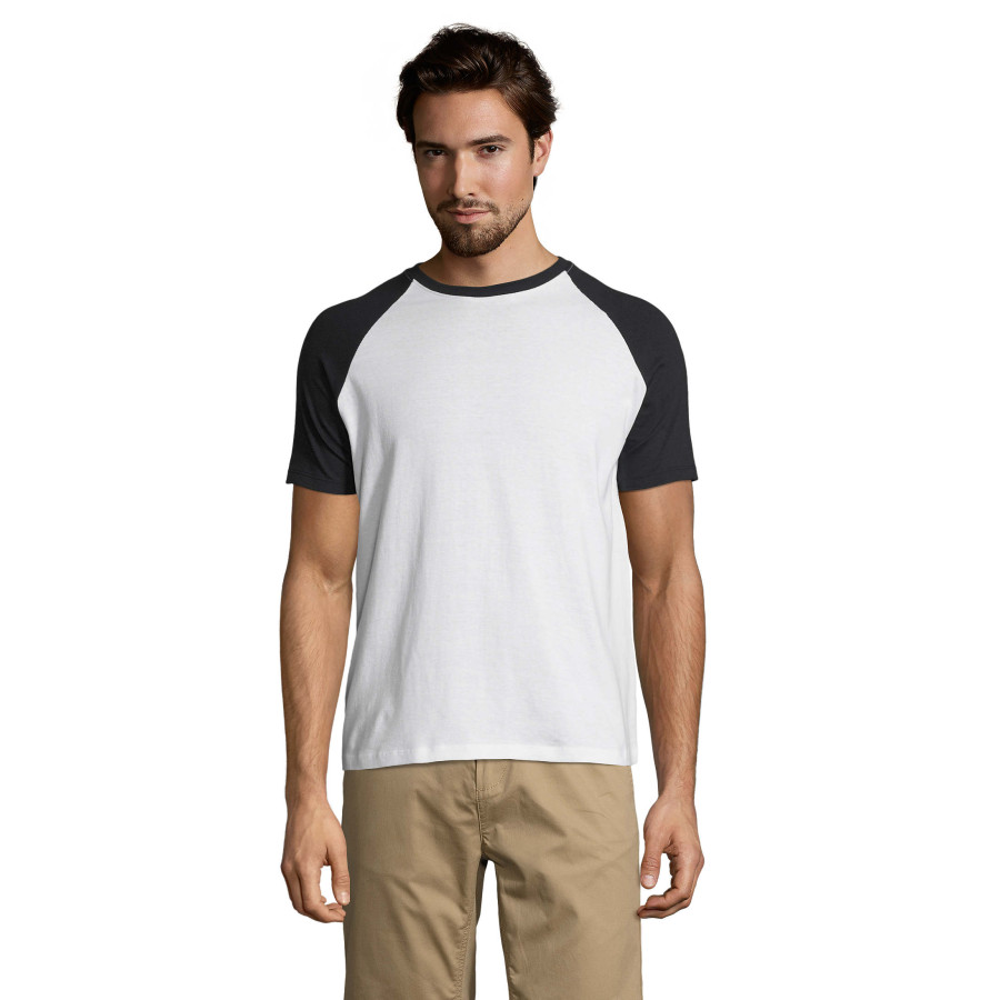 Чоловіча футболка FUNKY з рукавом реглан. Комір зв'язаний рібом з додаванням еластану, зміцнююча тасьма по коміру. Виріб викроєн з трикотажного полотна, без бічних швів.