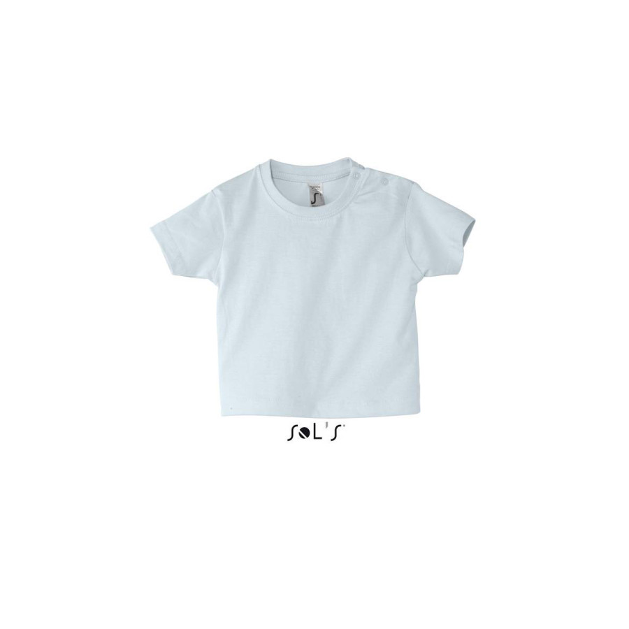 Футболочка для немовляти SOL'S MOSQUITO. Стиль: класичний, застібка на лівому плечі з 2 кнопками тон в тон, традиційний крій. Матеріал: ДЖЕРСІ 160, виключно ніжне полотно, бавовна, технологія Softek Innovation Process®, зміцнююча тасьма по коміру, край коміра оброблен рібом.