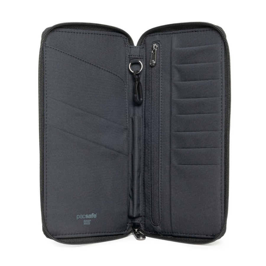 Гаманець на блискавці Pacsafe® RFIDsafe travel wallet з переробленого поліестеру ідеально підійде для подорожей сім’єю.