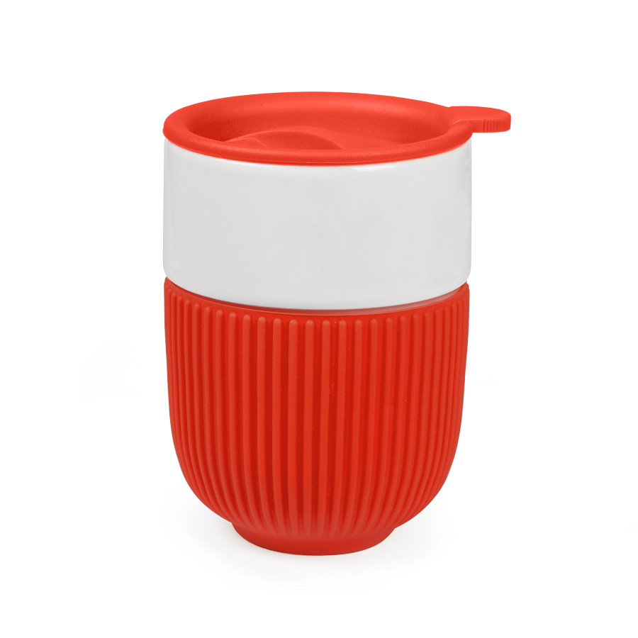 Горнятко керамічне з пластиковою кришкою та силіконовою накладкою.
