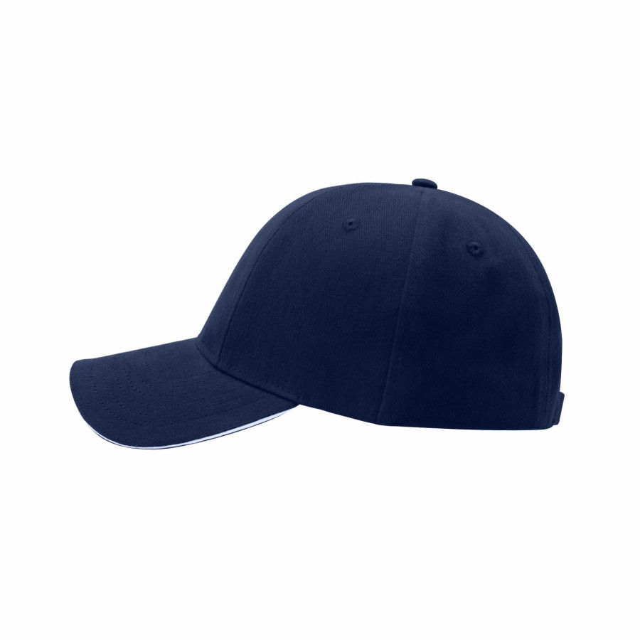 Кепка 100% бавовна з 6-ти клинами, з отворами для вентиляції; козирок - жорсткий, застібка - металева. Щільність тканини - 320 г/м2