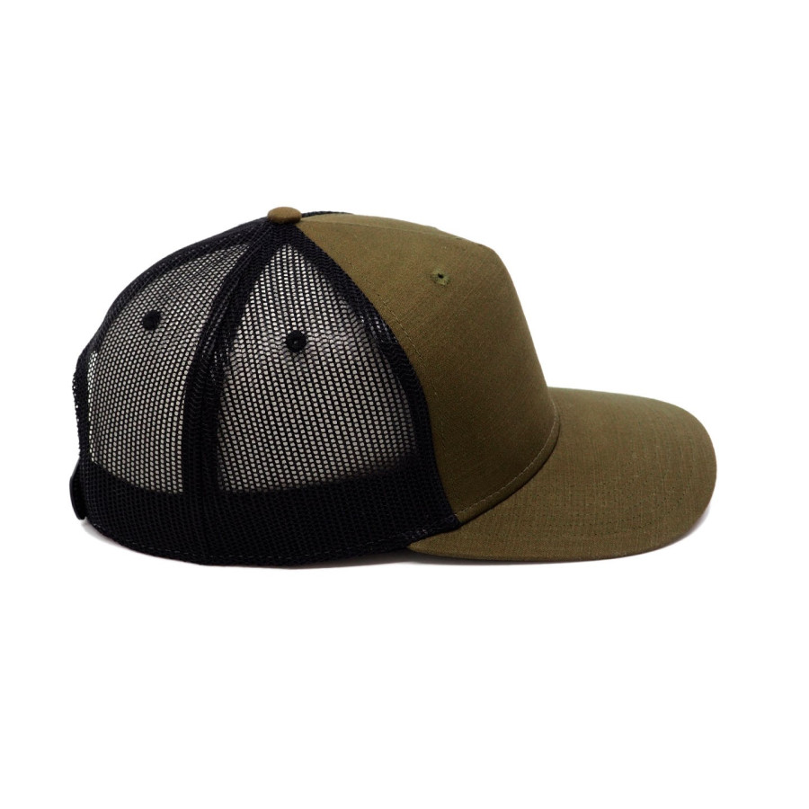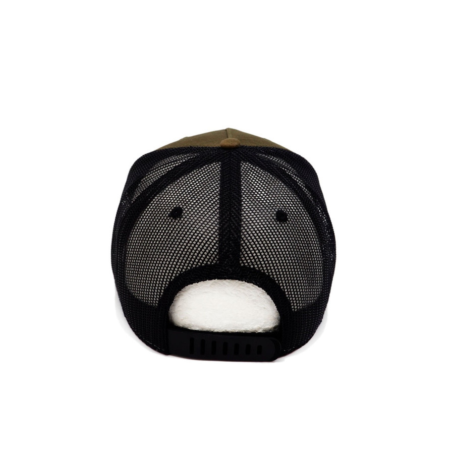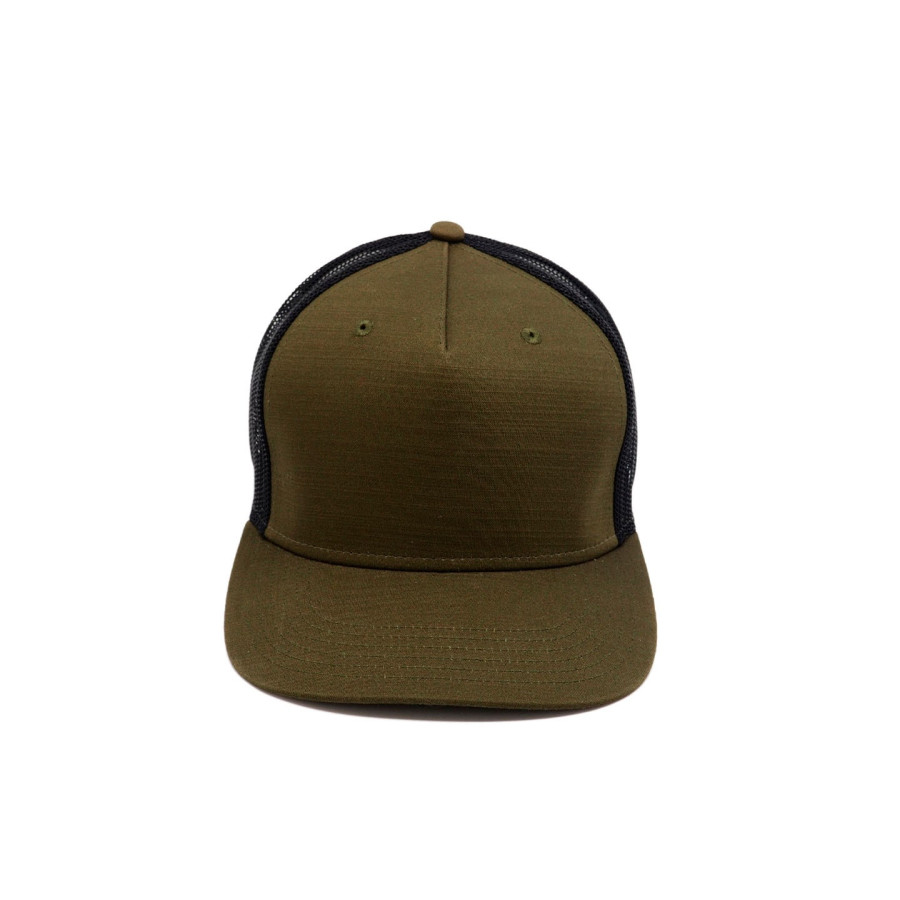 Кепка має п’ять клинів з люверсами, які оздоблені вишивкою. Структурована широка передня панель виготовлена з щільної тканини. Бокові та задні панелі виконані з сітчастого матеріалу (mesh), що забезпечує повітропроникність і вентиляцію.