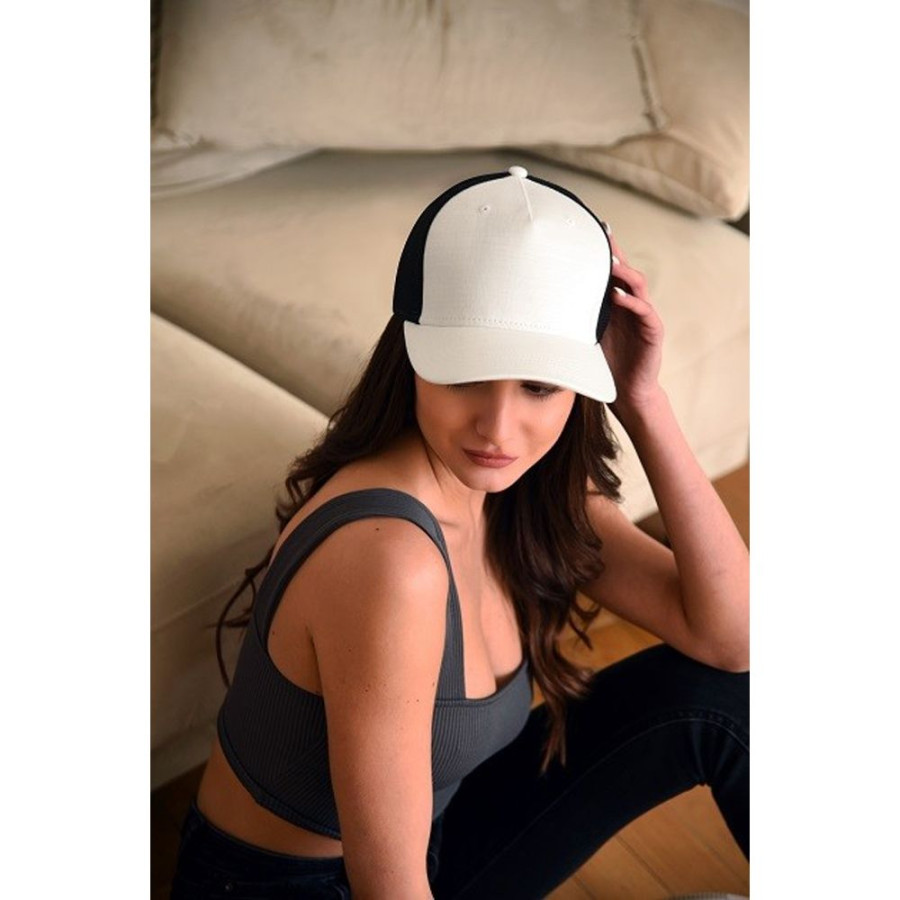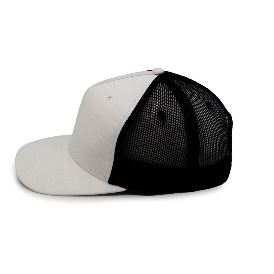 Кепка має п’ять клинів з люверсами, які оздоблені вишивкою. Структурована широка передня панель виготовлена з щільної тканини. Бокові та задні панелі виконані з сітчастого матеріалу (mesh), що забезпечує повітропроникність і вентиляцію.