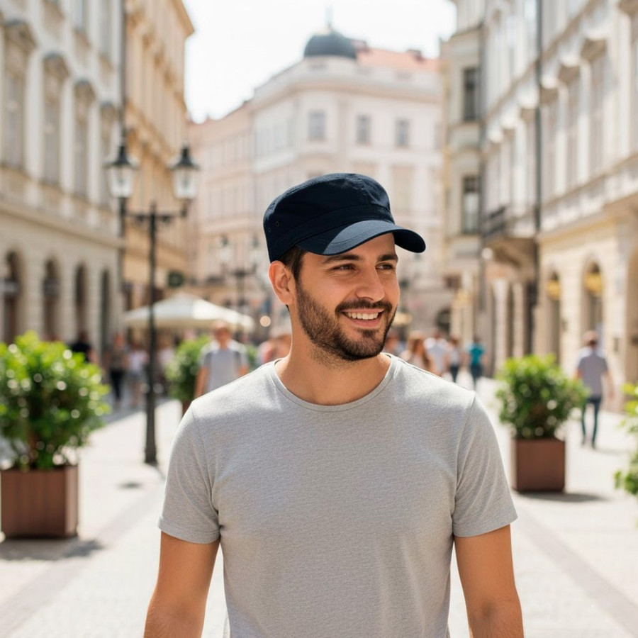 Кепка MILITARY, яка зроблена з бавовни і застібається на липучку. Це дуже стильний виріб з обрізним козирком, а бавовняна пов'язка від поту допомагає захистити в спекотні дні. Просто виберіть одну з восьми колірних варіацій і будьте в моді.