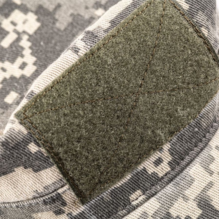 Кепка MILITARY з липучкою велкро 50 х 80 мм на передній панелі кольору піксельний камуфляж, яка зроблена з бавовни і застібається на липучку. Це дуже стильний виріб з обрізаним козирком, а бавовняна пов'язка від поту допомагає захистити в спекотні дні.