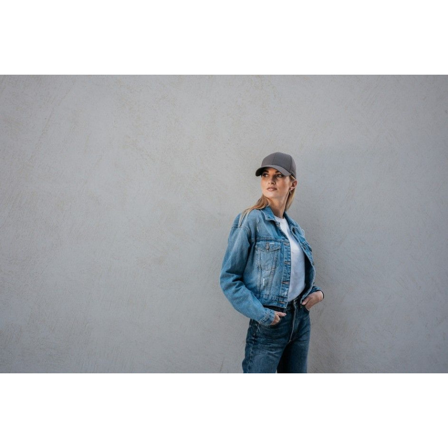 Кепка має низький профіль, шість панелей і зручну застібку на липучці, що дозволяє легко регулювати об’єм для ідеальної посадки. Люверси оздоблені вишивкою в тон основного матеріалу.