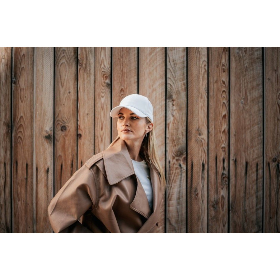 Застібка-снапбек м’яка, гнучка та зручна для регулювання, що гарантує комфортну посадку. Люверси оздоблені вишивкою в тон основного матеріалу. Щільність тканини становить 200 г/м², що забезпечує довговічність і комфорт навіть при інтенсивному використанні.
