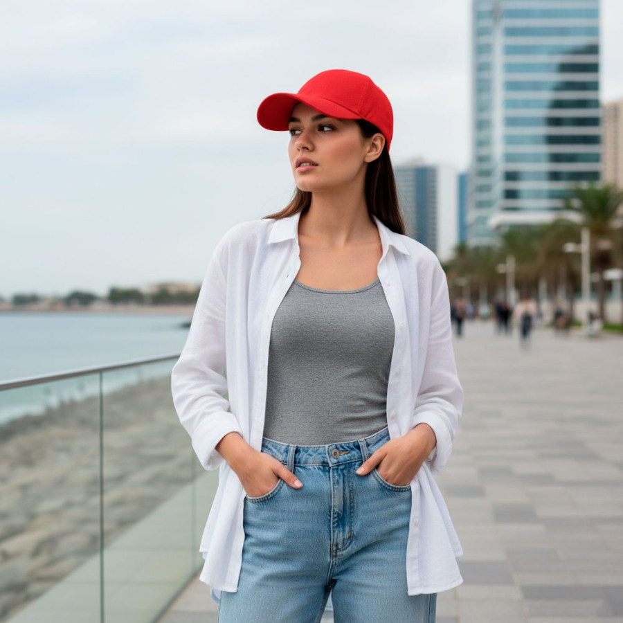 - Вигнутий козирок та вишиті люверси у тон виробу