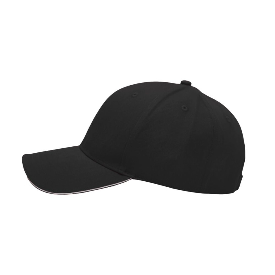- Вигнутий козирок з контрастною вставкою «сендвіч» білого кольору та вишиті люверси у тон виробу