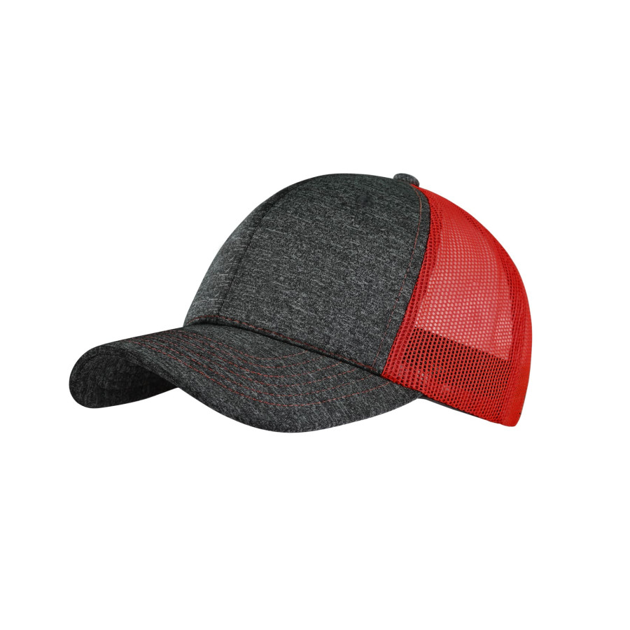 Кепка 100% синтетика з 6-ти клинами, комбінація тканина з сіткою; козирок - жорсткий, регульована застібка з гнучкого пластику