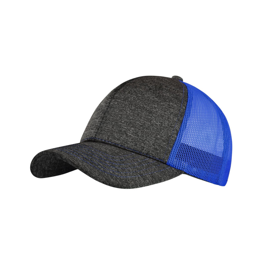 Кепка 100% синтетика з 6-ти клинами, комбінація тканина з сіткою; козирок - жорсткий, регульована застібка з гнучкого пластику