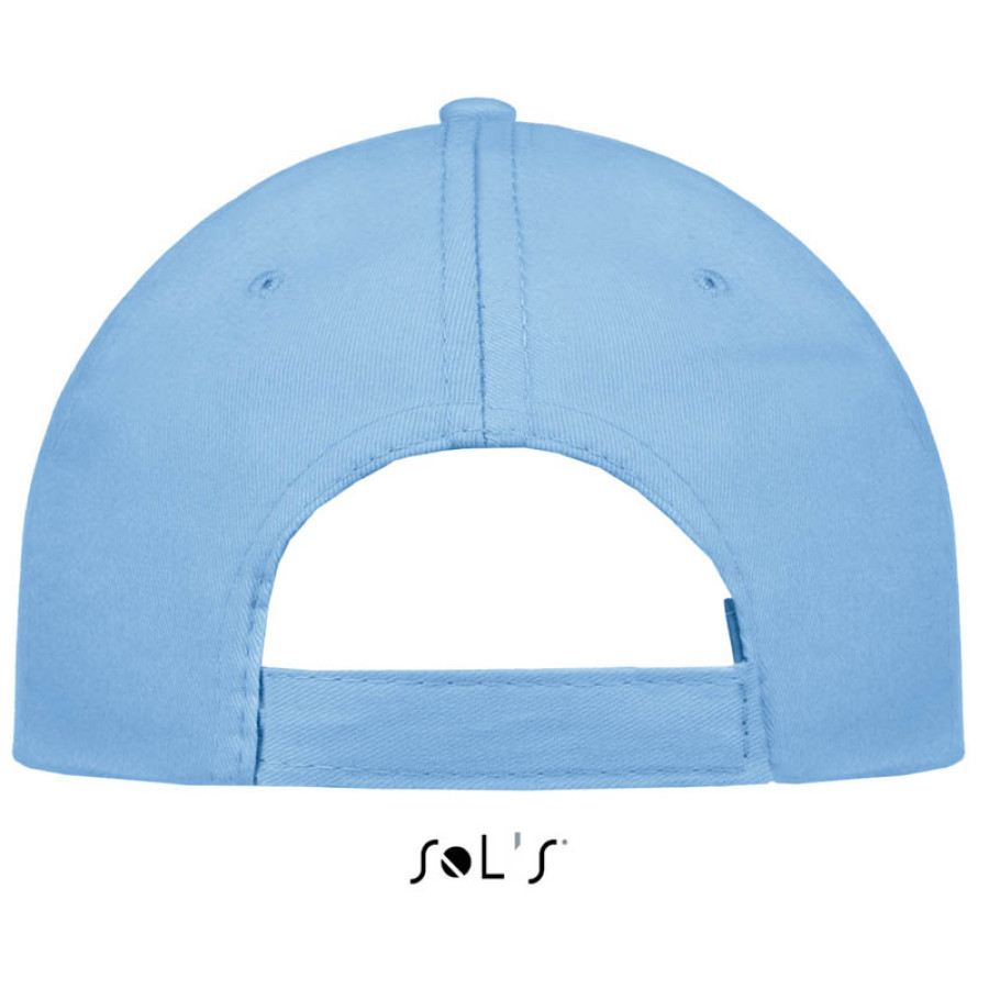 Кепка з 5 клинів SOL'S SUNNY. Матеріал: 100% легкий хлопок з начосом, жорсткий козирок, 4 отвори з заклепками для вентиляції, регульована застібка на липучці ззаду.