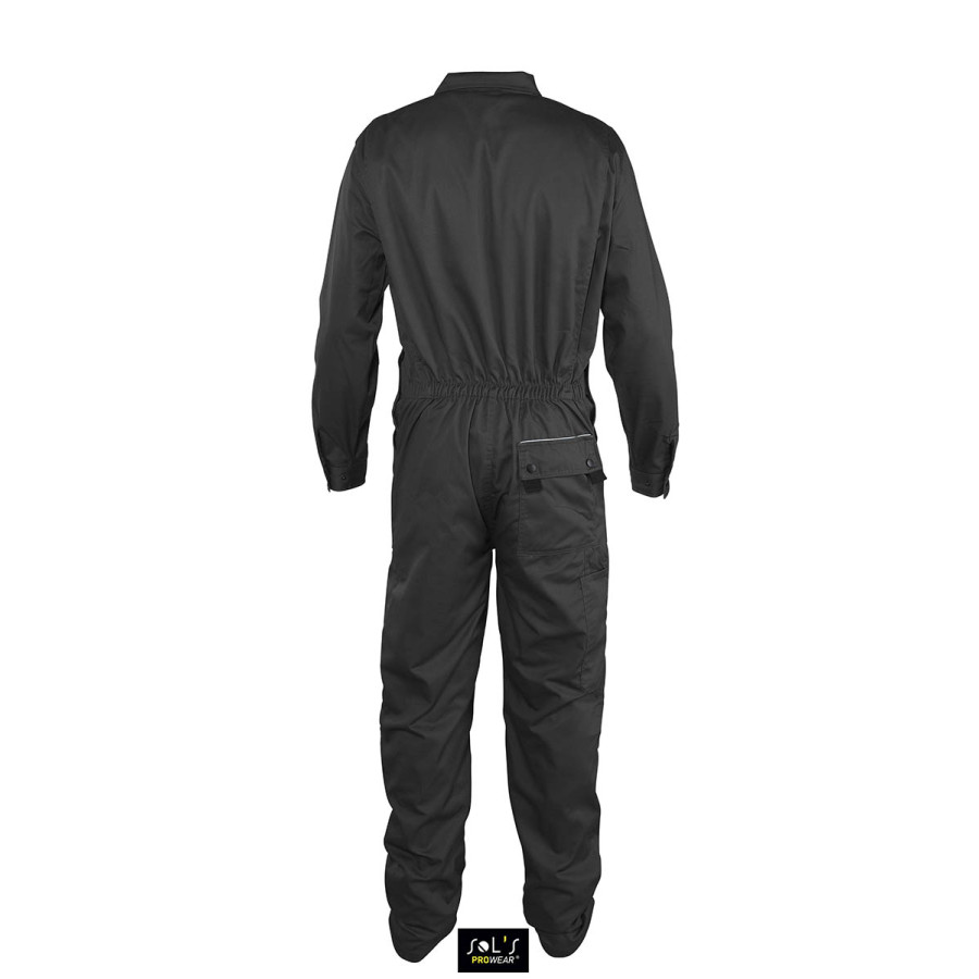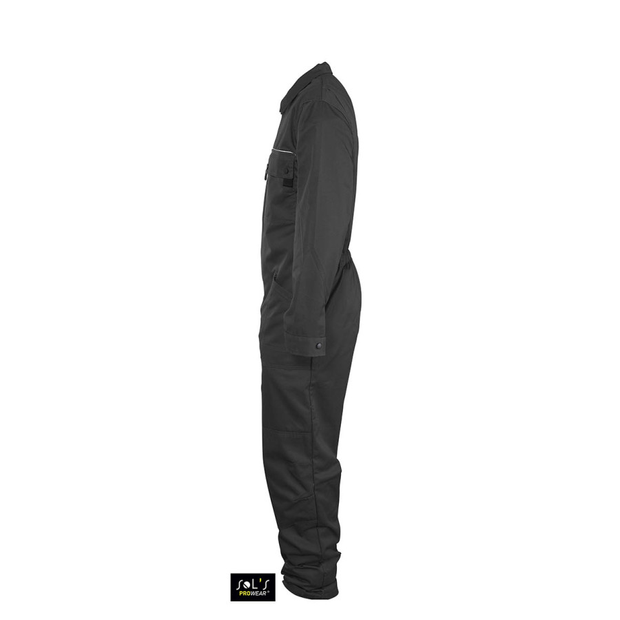 Робочий комбінезон унісекс з подвійною блискавкою SOL'S SOLSTICE PRO. 10 кишень, кишені з клапанами зі світловідбиваючої смугою, спеціальні кишені для наколінників, еластична стягуюча вставка на поясі ззаду блискавка з двостороннім бігунком. Матеріал: ПОЛІБАВОВНА 240, 65% поліестер, 35% бавовна.