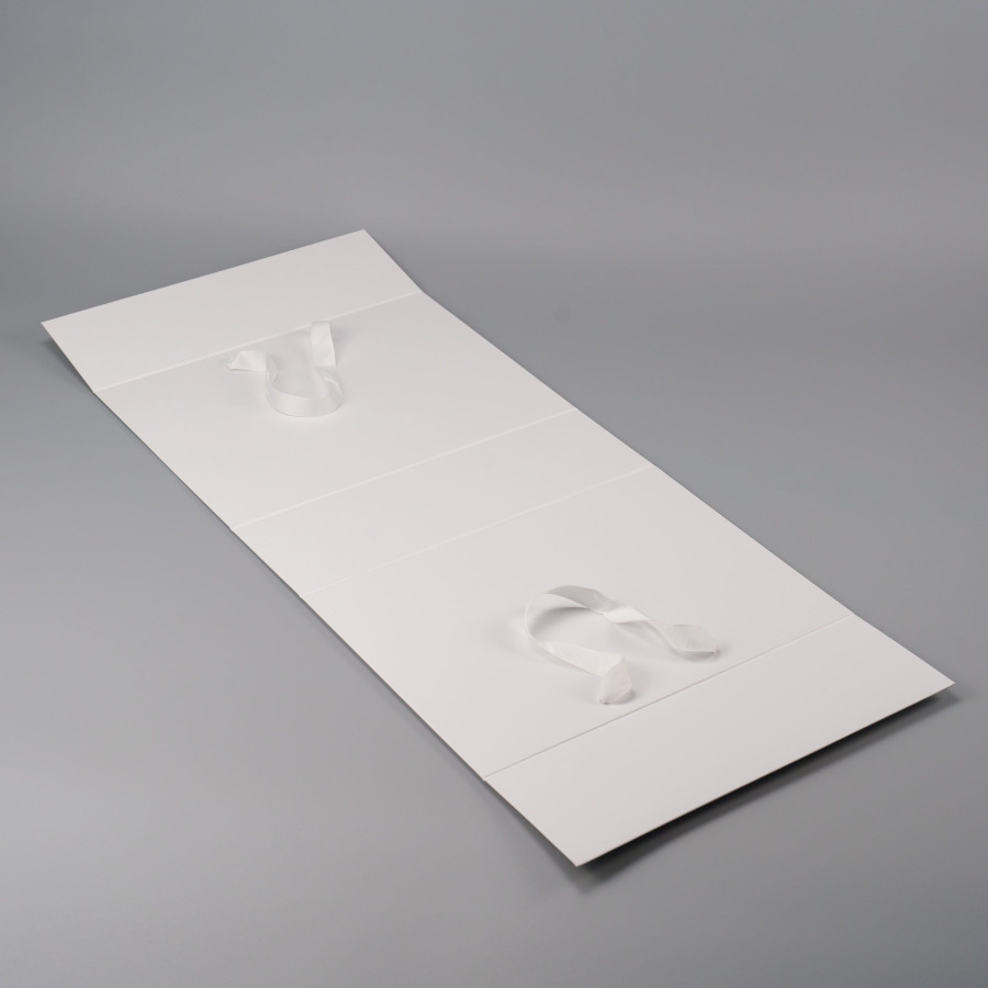 Коробка складна з твердого, переплетеного картону, з двома ручками, вкрита дизайнерським папером. Кришка на магнітах