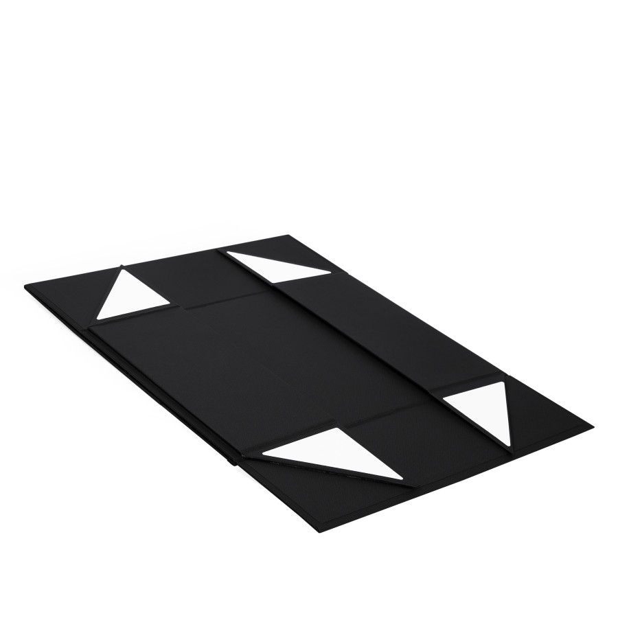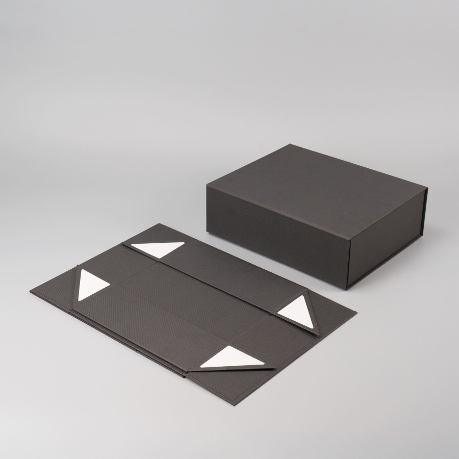 Коробка складна з твердого, переплетеного картону, вкрита дизайнерським фактурним папером. Кришка на магнітах.