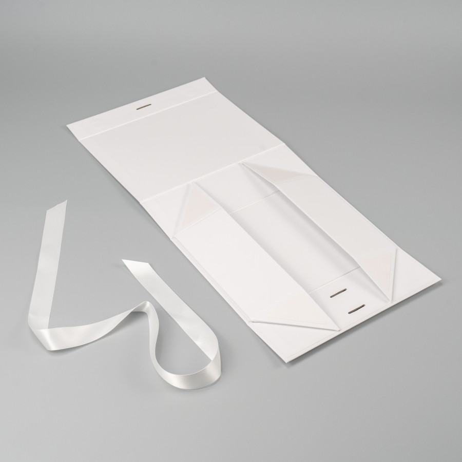 Коробка складна з твердого, переплетеного картону, вкрита дизайнерським папером, атласна лента ширина 4,0 см. Кришка на магнітах.