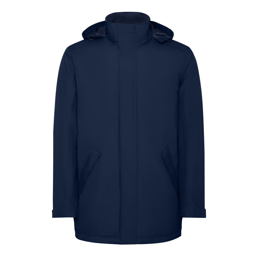 Пухова куртка-парка з від'єднуваним капюшоном та еластичними регуляторами. Водонепроникний матеріал. Спереду блискавка, що прикрита широкою планкою з того ж матеріалу. Манжети з регулятором на липучці. Бічні кишені з відповідними блискавками, прикриті планкою з тканини. Внутрішня кишеня ліворуч. Внутрішній доступ для персоналізації.