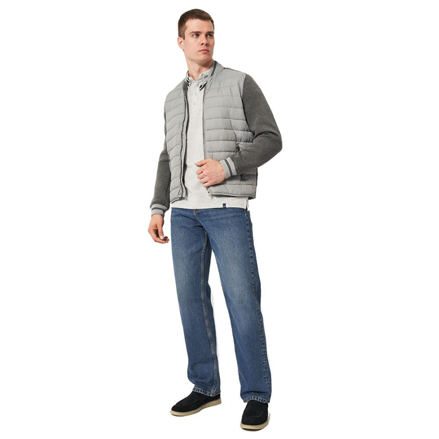 Курточка унісекс з неопрена і нейлоновим набиванням спереді.Круглий воріт, дві кишені на блискавці. Воріт, манжети і низ спинки оброблений рібом з контрасними лініями.