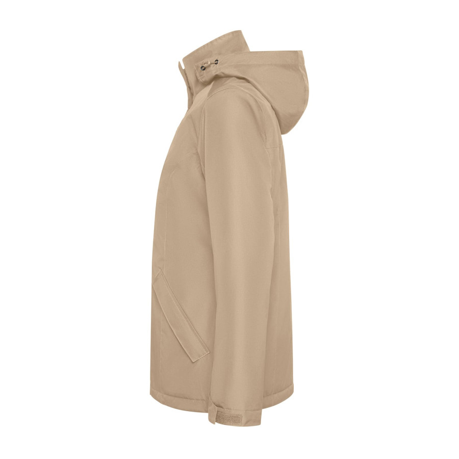 Пухова куртка-парка з від'єднуваним капюшоном та еластичними регуляторами. Водонепроникний матеріал. Спереду блискавка, що прикрита широкою планкою з того ж матеріалу. Манжети з регулятором на липучці. Бічні кишені з відповідними блискавками, прикриті планкою з тканини. Внутрішня кишеня ліворуч. Внутрішній доступ для персоналізації.