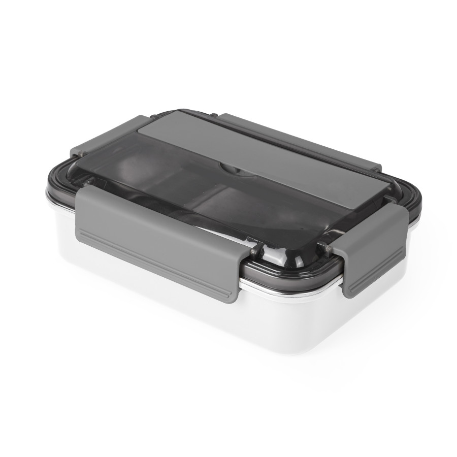 Має прозору кришку, яка герметично закривається з додатковим відділенням, де зберігається виделка+ложка (в комплекті металева ложка+виделка). Посудина на два відділення з високоякісної нержавіючої сталі 304 . Об'єм: 800 мл. Розмір 22,5 х 16 х 7 см. В подарунковій картонній коробці. Розмір індивідуальної коробки: 22,8 х 16,5 х 7,8 см. Метод нанесення: шовкодрук, тамподрук, уф-друк.