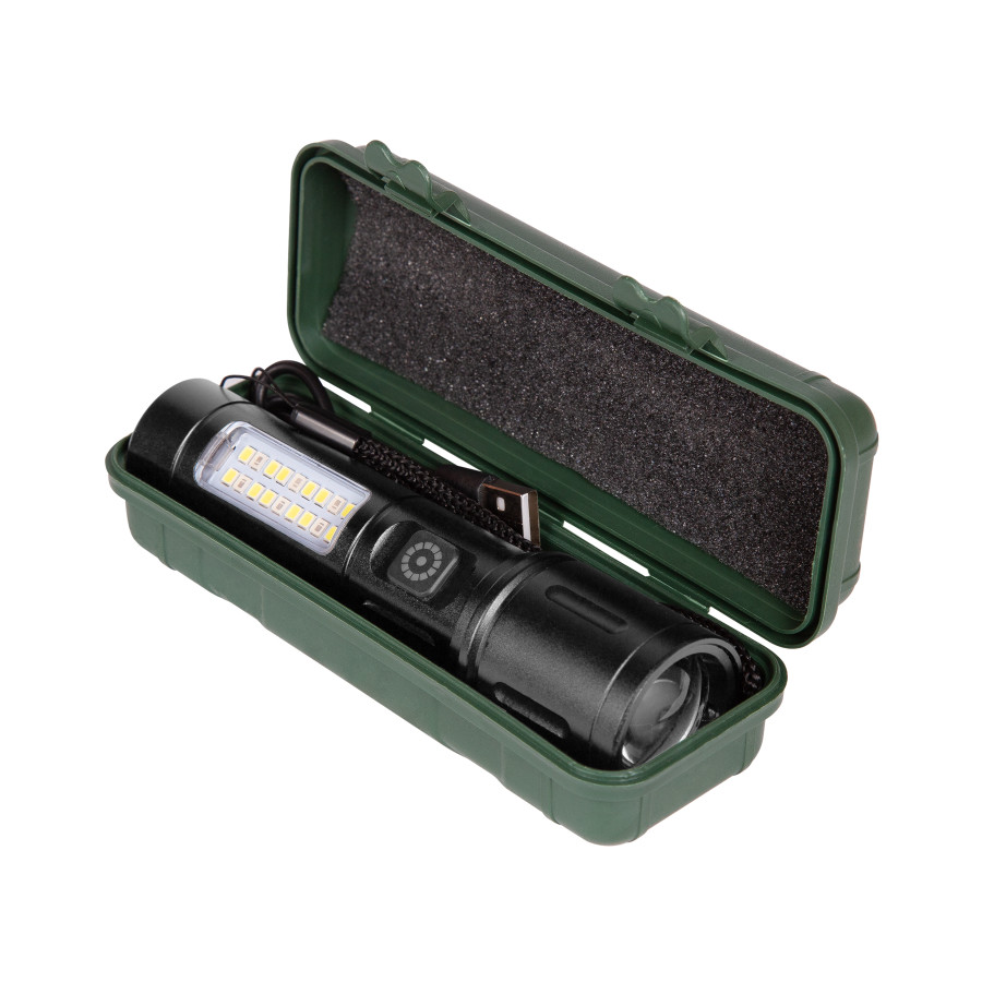 Світлодіодний ліхтарик Asper енергетично безпечний для навколишнього середовища. Режими: 6 ( основний світлодіод: 100%, 50%, страбоскопбічний SMD: білий, червоний, червоний страбоскоп, ВИМК) Розмір: голова діаметр 35 мм, ручка діаметр 28 мм, довжина в закритому 138 мм (відкритий 155 мм) ПОПЕРЕДЖЕННЯ: Не направляйте промінь в очі, оскільки це може зашкодити зору. Бережіть прилад подалі від дітей.
