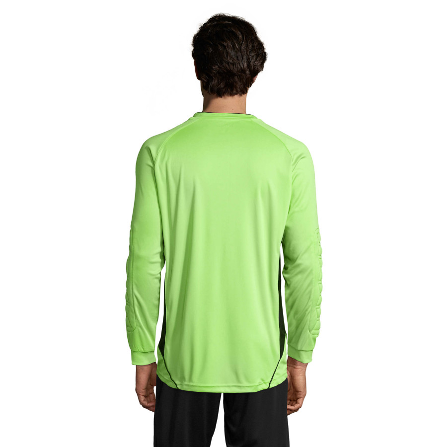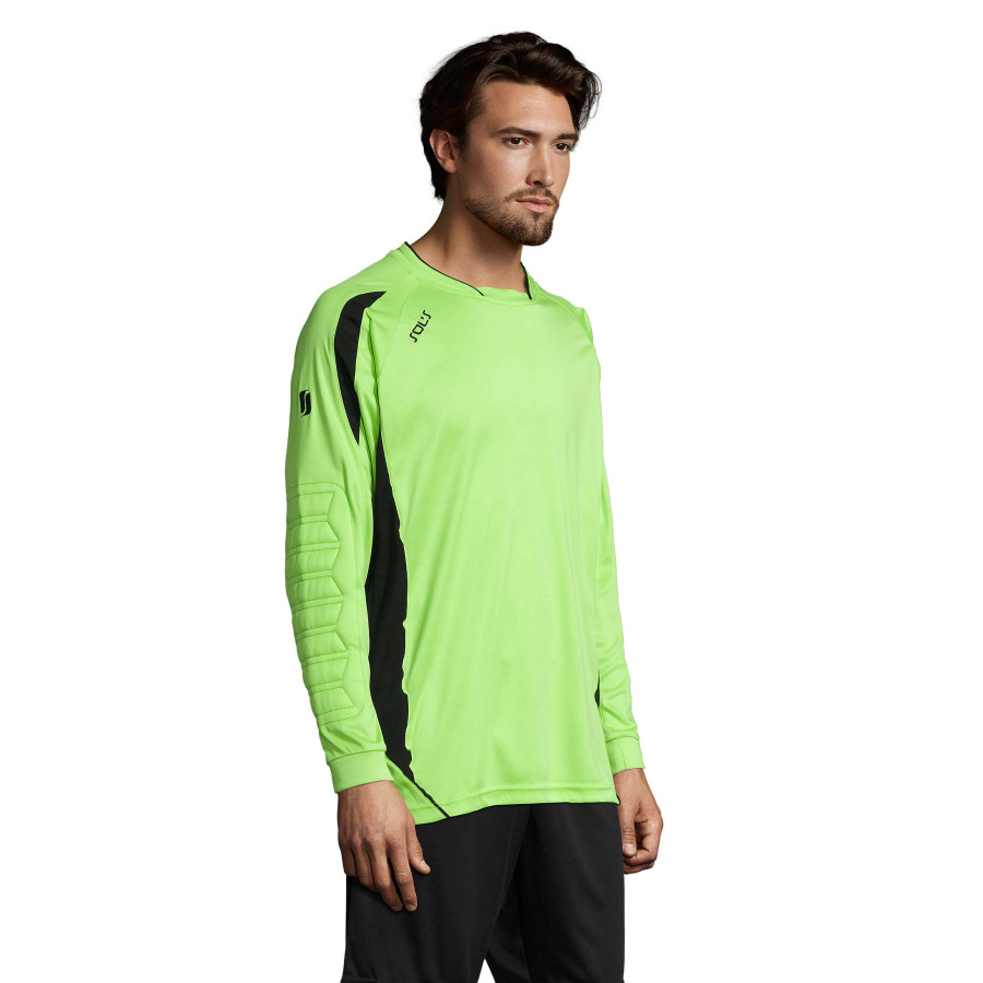 Футболка воротаря SOL'S AZTECA. Рукав реглан. Контрастні перфоровані вставки з боків і на рукавах. Вишитий контрастною ниткою логотип. Довгий рукав з манжетами в резинку і налокітники для захисту від ударів. Подовжена спинка з заокругленням по низу. Матеріал: ІНТЕРЛОК 140, гладкий поліестер 100%. Питома вага: 140 г / кв.м. Підходить для друку сублімації.