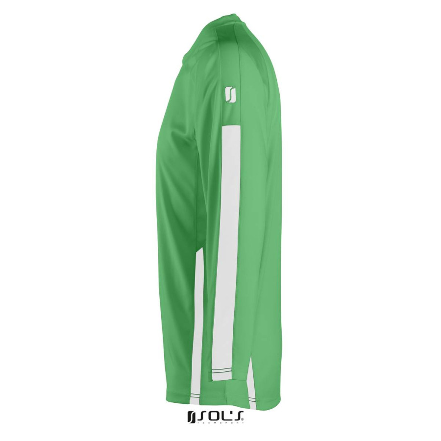 Лонгслів спортивний дитячий SOL'S Wembley LSL (насичений зелений/білий) з логотипом — замовлення виготовлення від компанії Giftex. Ми пропонуємо високу якість продукції, швидке виготовлення, вигідні ціни та знижки постійним клієнтам. Працюємо з доставкою в будь-яке місто України.