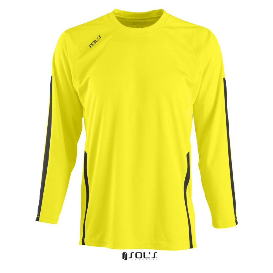 Лонгслів спортивний дитячий SOL'S Wembley LSL (лимонний/чорний) з логотипом — замовлення виготовлення від компанії Giftex. Ми пропонуємо високу якість продукції, швидке виготовлення, вигідні ціни та знижки постійним клієнтам. Працюємо з доставкою в будь-яке місто України.
