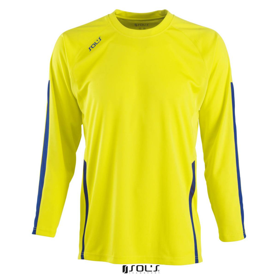 Лонгслів спортивний SOL'S Wembley LSL (лимонний/синій) з логотипом — замовлення виготовлення від компанії Giftex. Ми пропонуємо високу якість продукції, швидке виготовлення, вигідні ціни та знижки постійним клієнтам. Працюємо з доставкою в будь-яке місто України.