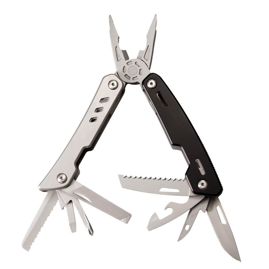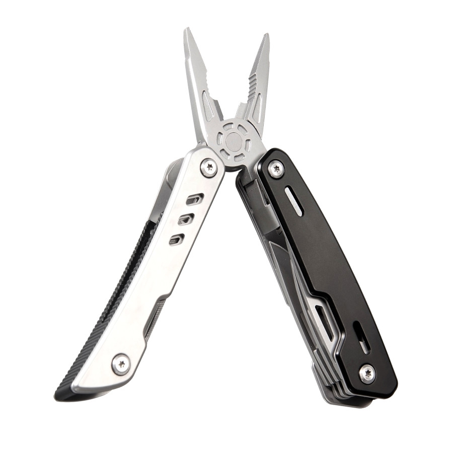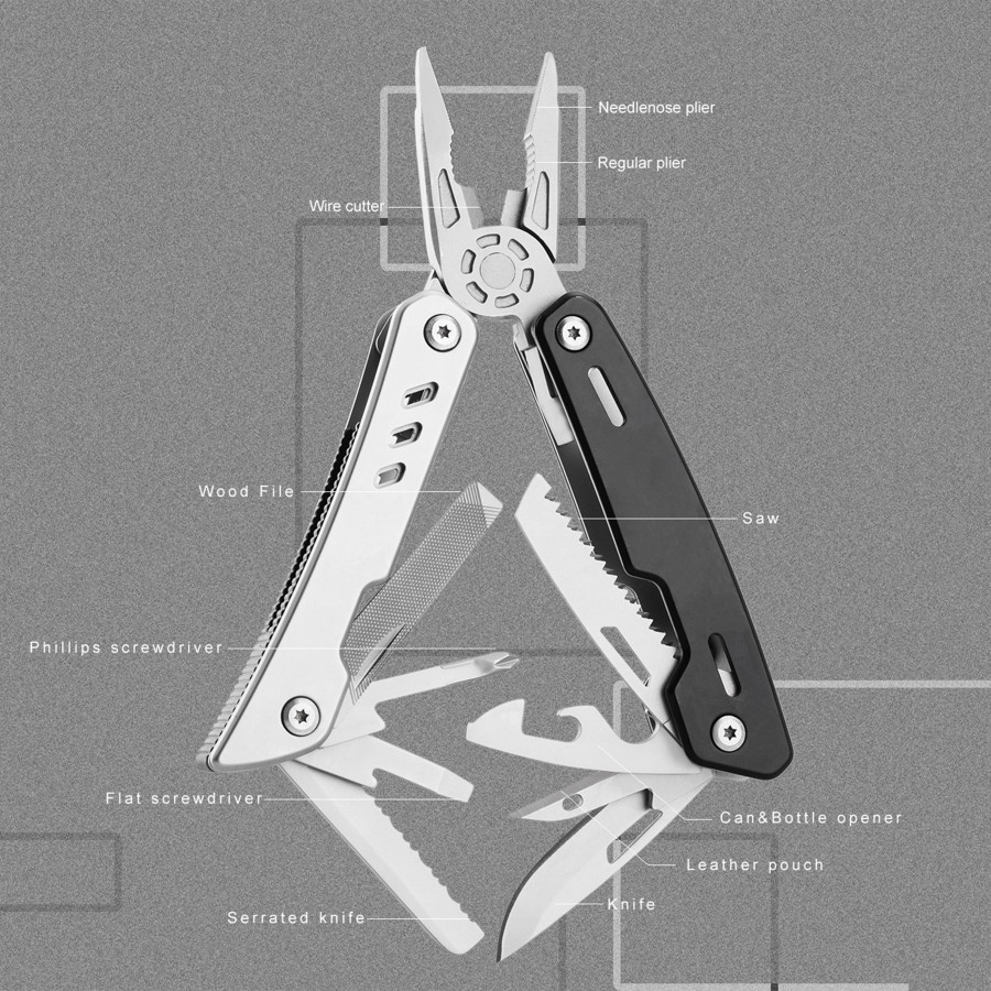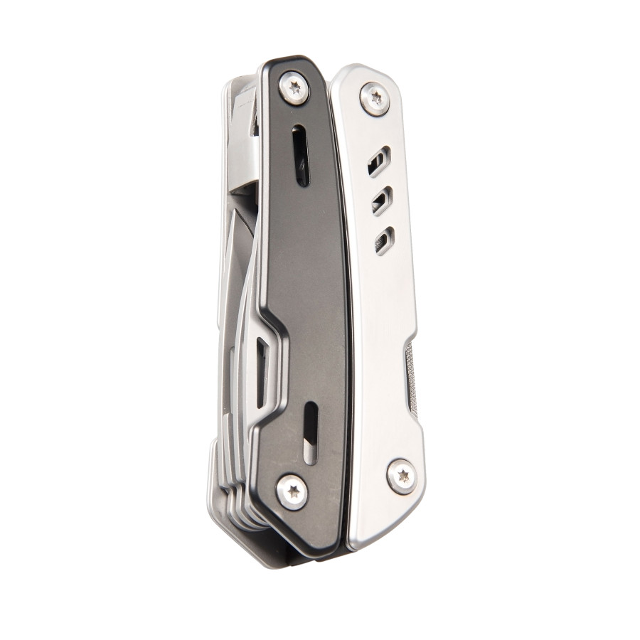 Мультитул на 9 функцій з фіксатором елементів, що відкриваються. Розмір в складеному стані 10,5Х4Х2 см., вага 227 гр., запакований в нейлоновий чохол.