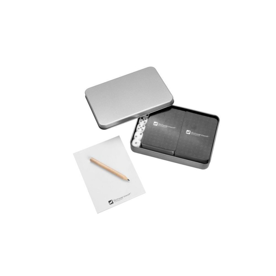 Як замовити Набір гральний Schwarzwolf Murray карти/кубики в жерстяній коробці з логотипом від компанії Giftex: