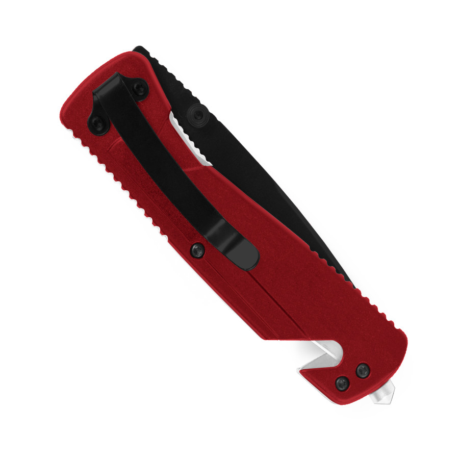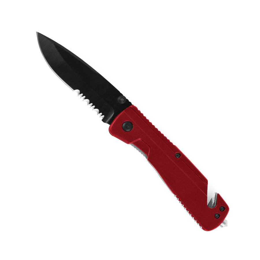 Ніж з високоякісної нержавіючої сталі, гострим лезом з фіксатором, кліпсою для чіпляння на ремінь. Має такі додаткові безпекові функції: - Стержень для вибивання і розбивання скла в автомобілі у випадку аварії якщо закриті або заблоковані двері. Ця функція може врятувати вам життя. - Подвійне приховане лезо для легкого обрізання реміня безпеки якщо заклинило реміневий механізм. Упаковка елегантна чорна коробка. Розмір в складеному стані 11,5 см., у відкритому 20,1 см.