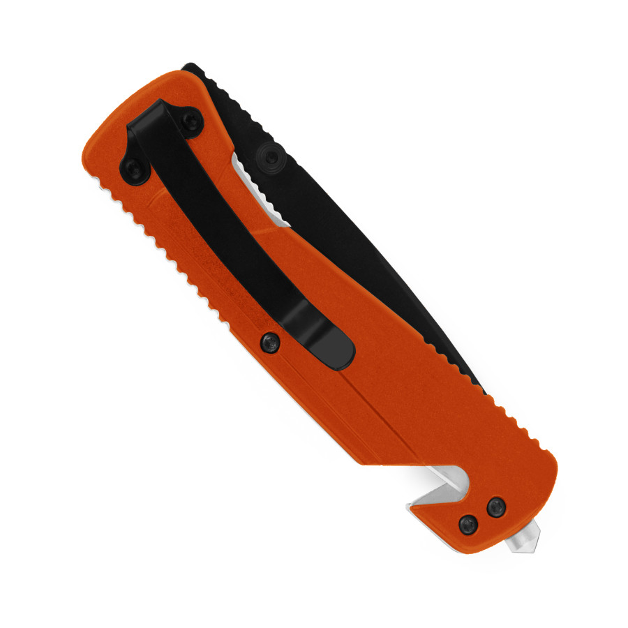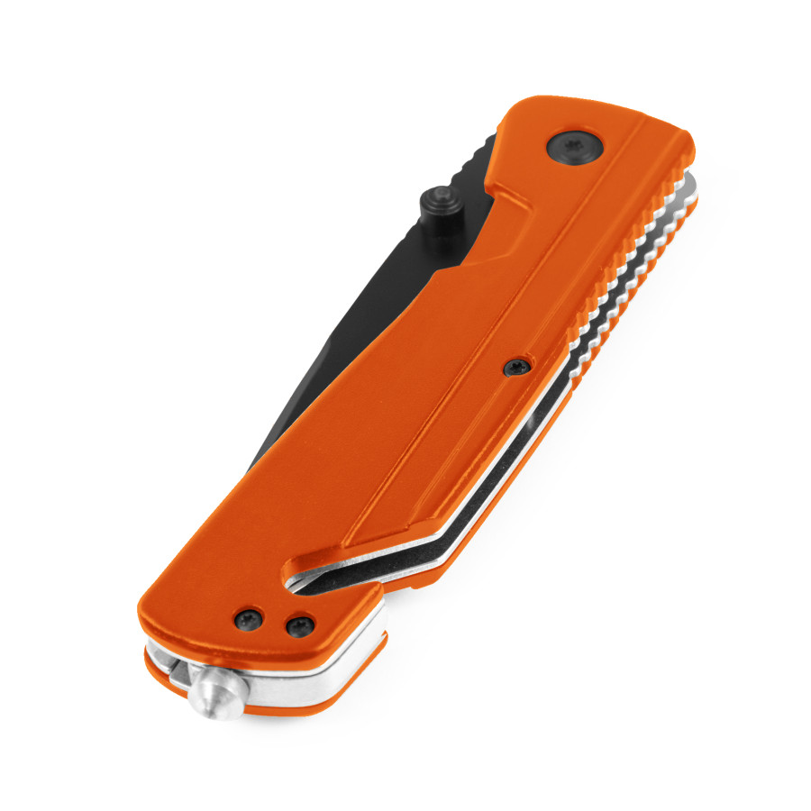 Ніж з високоякісної нержавіючої сталі, гострим лезом з фіксатором, кліпсою для чіпляння на ремінь. Має такі додаткові безпекові функції: - Стержень для вибивання і розбивання скла в автомобілі у випадку аварії якщо закриті або заблоковані двері. Ця функція може врятувати вам життя. - Подвійне приховане лезо для легкого обрізання реміня безпеки якщо заклинило реміневий механізм. Упаковка елегантна чорна коробка. Розмір в складеному стані 11,5 см., у відкритому 20,1 см.