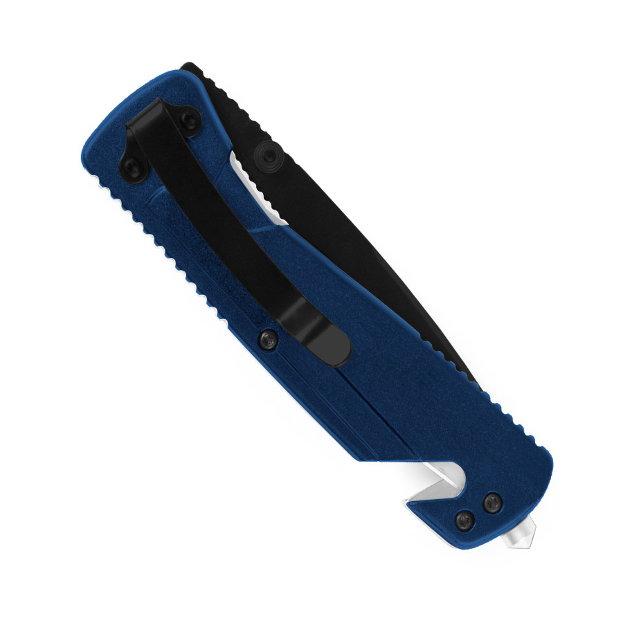 Ніж з високоякісної нержавіючої сталі, гострим лезом з фіксатором, кліпсою для чіпляння на ремінь. Має такі додаткові безпекові функції: - Стержень для вибивання і розбивання скла в автомобілі у випадку аварії якщо закриті або заблоковані двері. Ця функція може врятувати вам життя. - Подвійне приховане лезо для легкого обрізання реміня безпеки якщо заклинило реміневий механізм. Упаковка елегантна чорна коробка. Розмір в складеному стані 11,5 см., у відкритому 20,1 см.