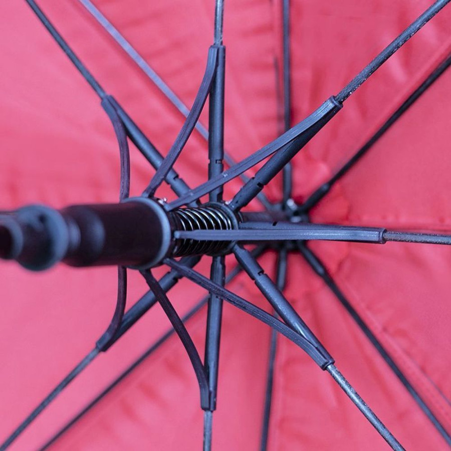 На металевому стрижні парасолі кріпляться потужні спиці зі скловолокна, на них натягнутий захисний купол із водонепроникної тканини епонж 190Т.