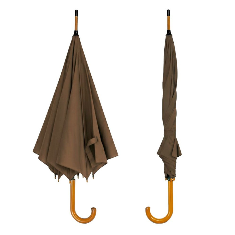 Парасолька має форму тростини. Її вигнута ручка й стрижень (основа) зроблені з натурального дерева, тому виріб досить легкий. Функція автовідкриття сприяє швидкому розгортанню купола.