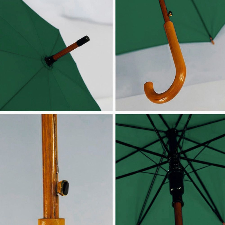 Парасолька має форму тростини. Її вигнута ручка й стрижень (основа) зроблені з натурального дерева, тому виріб досить легкий. Функція автовідкриття сприяє швидкому розгортанню купола.